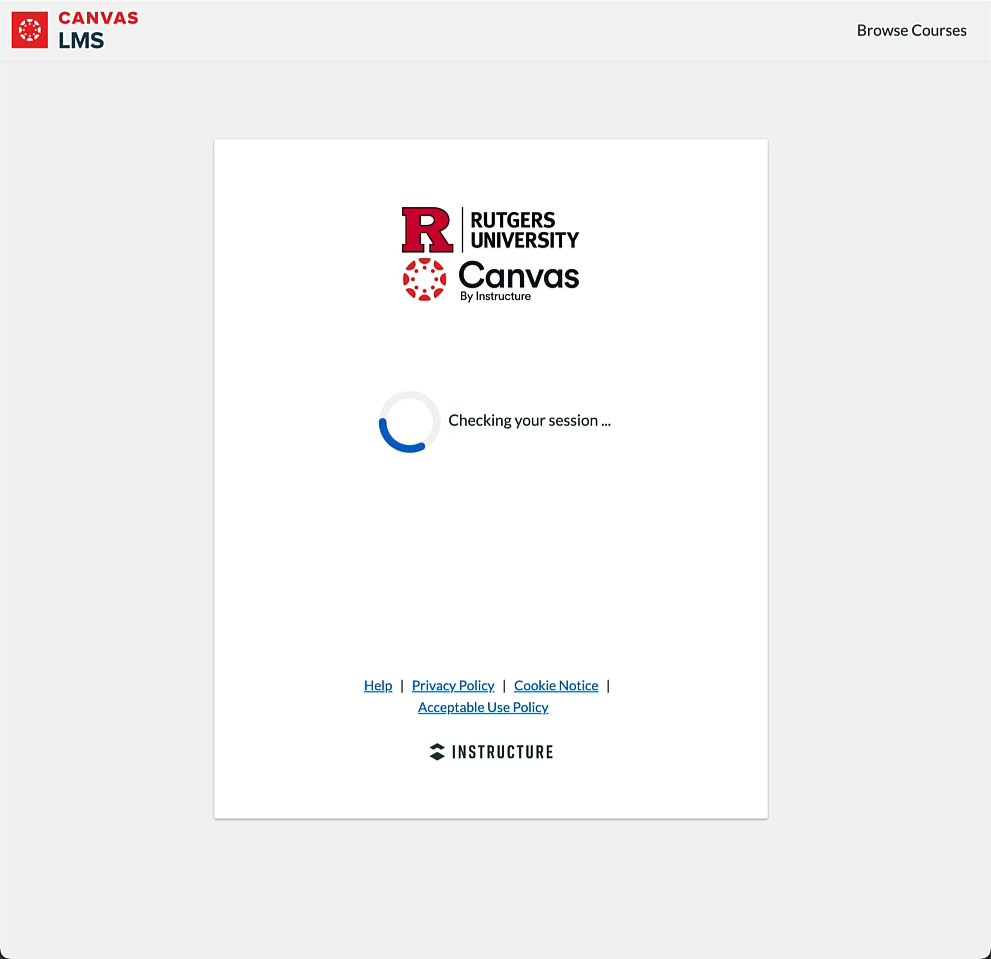 - A Rutgers Canvas screen will display “Checking your session…”.