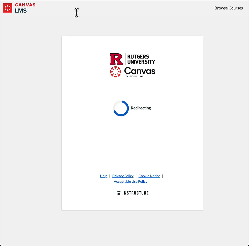 - When you navigate to https://canvas.rutgers.edu/ and click the Rutgers NetID option, you will briefly see a Canvas/Rutgers page displaying the message “Redirecting.”